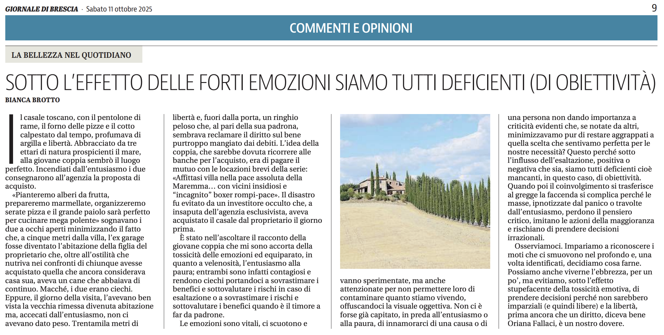 Possiamo anche viverne l’ebbrezza, per un po’, ma evitiamo, sotto l’effetto stupefacente della tossicità emotiva, di prendere decisioni perché non sarebbero imparziali (e quindi libere) e la libertà, prima ancora che un diritto, diceva bene Oriana Fallaci, è un nostro dovere.