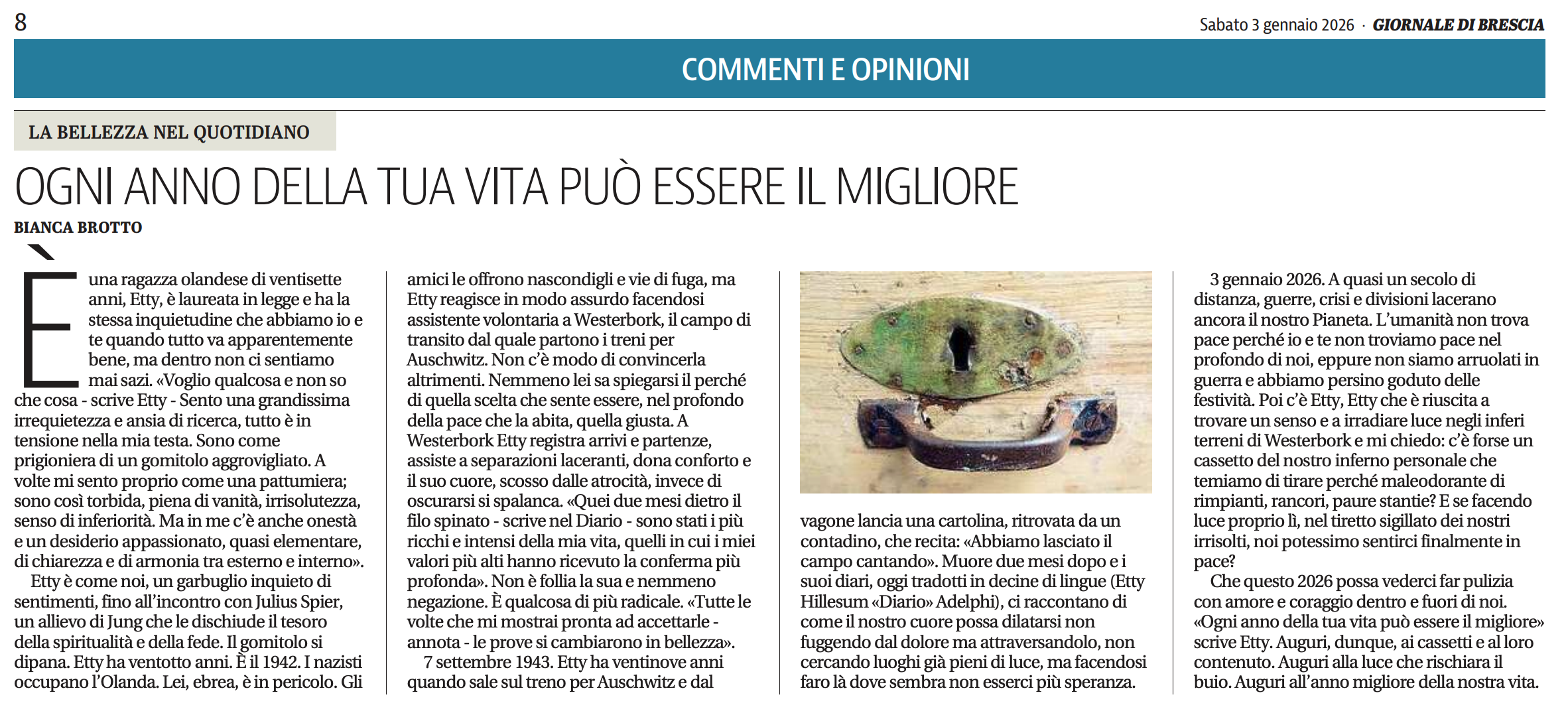 Che questo 2026 possa vederci far pulizia con amore e coraggio dentro e fuori di noi. «Ogni anno della tua vita può essere il migliore» scrive Etty. Auguri, dunque, ai cassetti e al loro contenuto.